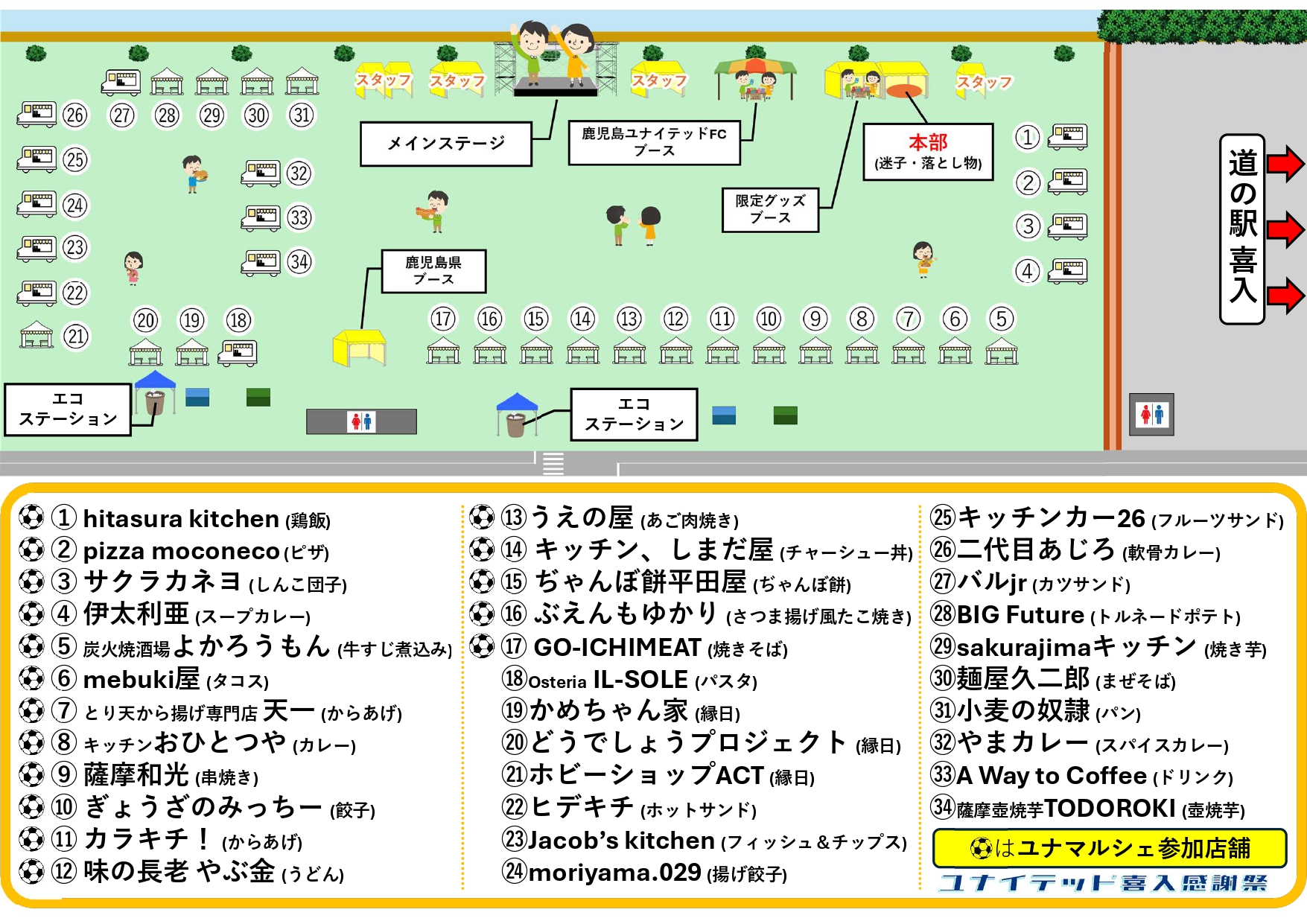 ※ 店名の前に ⚽ が付いている店舗は、ユナマルシェ参加店舗です。